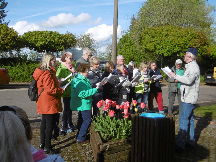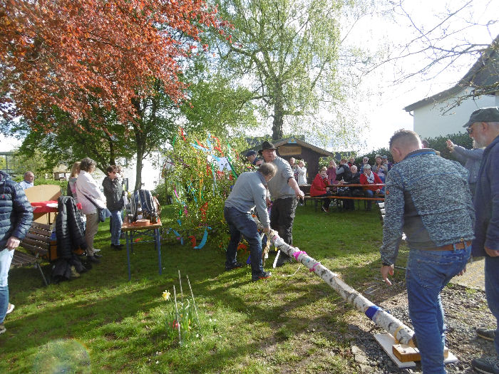 Im Rahmen freundschaftlicher Kontakte zu der Siedlergemeinschaft Neuweiler beteiligte sich ein Singkreis der Sängervereinigung an der Aufstellung des Maibaumes und trug einige Volkslieder zum Thema Frühling bei: